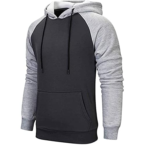 Wielsscca Mens Hoodies Patchwork Pullover Fleece Color Block Long Sleeve Sweatshirts Casual Tops with Pocket