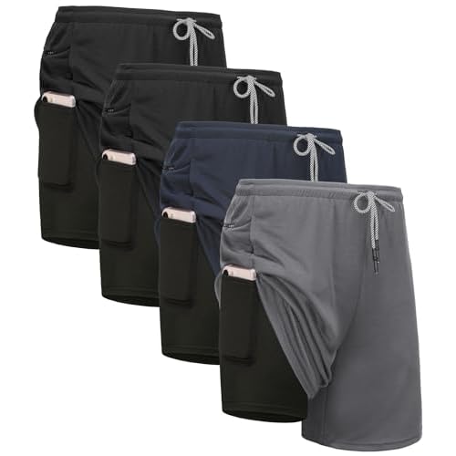 Kinglaman 4 Pack Mens 2 in 1 Running Workout Shorts with Liner, Gym Athletic Quick Dry Sport Shorts with Pockets