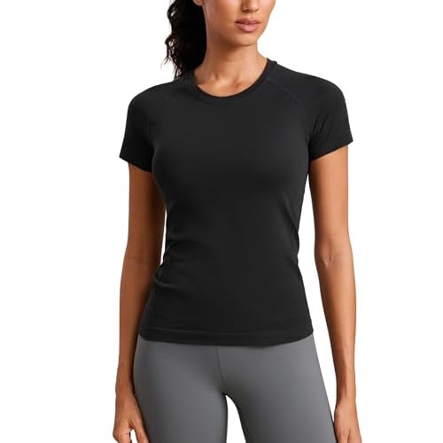CRZ YOGA Seamless Workout Tops for Women Hip Length – Athletic Running Gym Yoga Short Sleeve Shirts Breathable Crewneck Tees