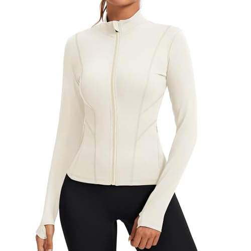 Rapbin Women’s Slim Fit Workout Jackets Full Zip Long Sleeve Running Athletic Tops Yoga Shirts with Thumb Holes