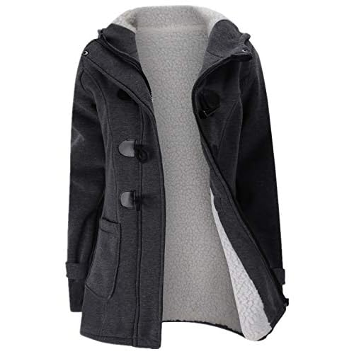JiangWu Womens Fashion Horn Button Fleece Thicken Coat with Hood Winter Warm Jacket