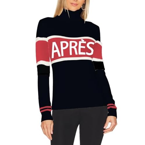 Women Turtleneck Sweaters Stripe Sleeve Colorblock Shirts Apres Ski Tops 2025 Fashion Winter Thermal Outfits