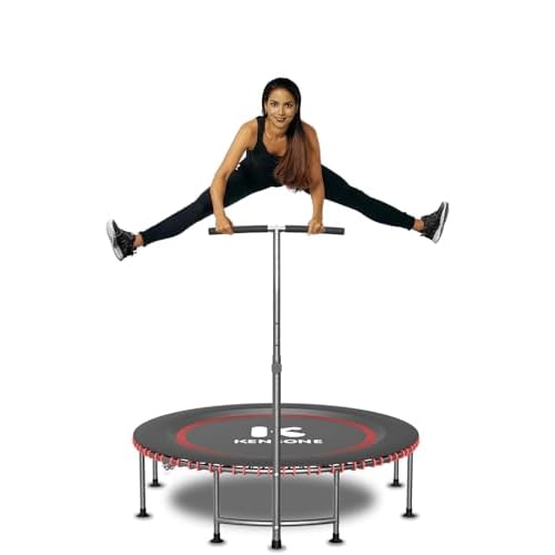 K KENSONE 40/48″ Low-Impact Rebounder Trampoline for Adults with Bungee, 450/550LBS Quiet Mini Exercise Trampoline with Adjustable U/T-Shaped Foam Handle Bar, Fitness Equipment for Indoor/Gym Workout
