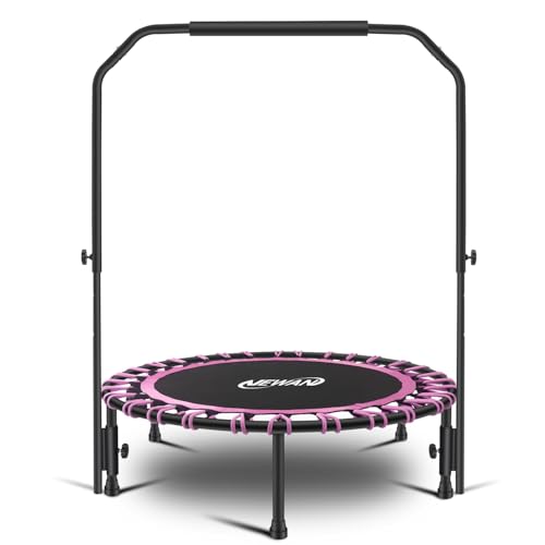 Newan 48″ Fitness Trampoline with Adjustable Handle Bar, Silent Trampoline Bungee Rebounder Jumping Cardio Trainer Workout for Adults – Max Limit 330 lbs