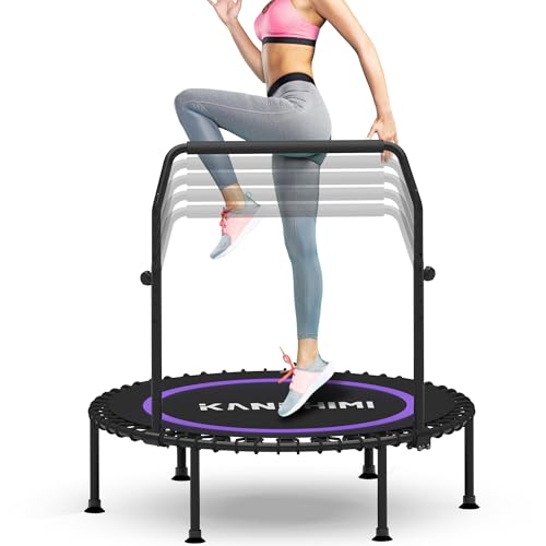 Kanchimi 450/550LBS Mini Rebounder Trampoline for Adults with Bar, 40″ /48″ Fitness Trampoline Adjustable Foam Handle, Stable&Quiet Exercise Rebounder for Adults Indoor/Outdoor Workout(Purple, 550LBS)