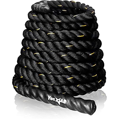 Yes4All 1.5/2 Inch Battle Ropes with Extra Protective Sleeve, Workout Ropes for Cross-Training Home Gym & Fitness Exercises, Strength Training – 30,40,50 Feet Lengths Available