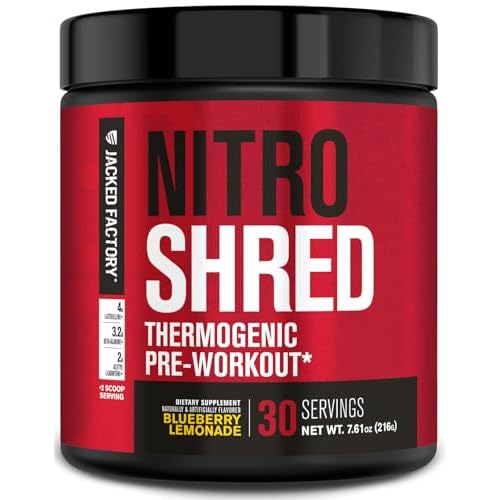 Jacked Factory NITROSURGE Shred Pre Workout Supplement – Energy Booster, Instant Strength Gains, Sharp Focus, Powerful Pumps – Nitric Oxide Booster & PreWorkout Powder – 30Sv, Blueberry Lemonade
