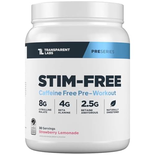 Transparent Labs Stim-Free Pre-Workout – Caffeine & Stim Free Pre Workout Powder for Men and Women with Beta Alanine Powder, Citrulline Malate, & elevATP – 30 Servings, Strawberry Lemonade