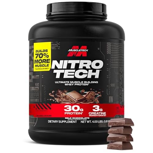Muscletech Whey Protein Powder (Milk Chocolate, 4 Pound) – Nitro-Tech Ultimate Muscle Building Formula with Whey Protein Isolate – 30g of Protein, 3g of Creatine & 6.8g of BCAA – Packaging May Vary