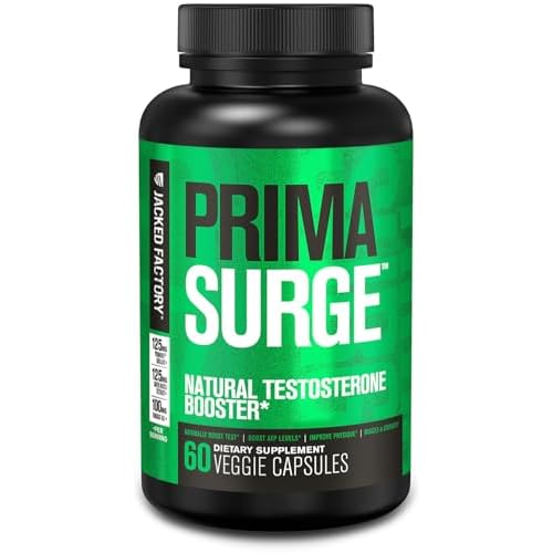 Jacked Factory Testosterone Booster for Men PRIMASURGE – w/Tongkat Ali, PrimaVie, Ashwagandha – Boost Vitality, Muscle Growth & Energy | Natural Test Booster Supplement – 60 Veggie Pills