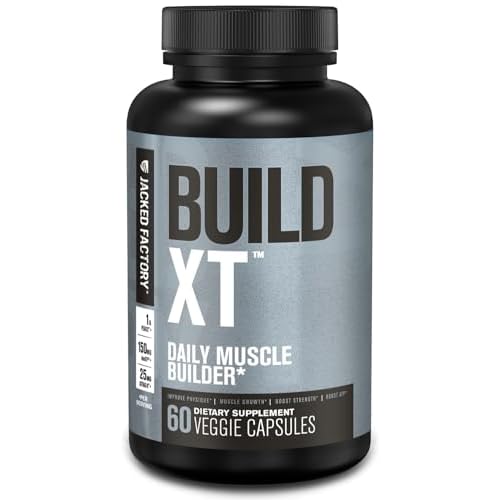 Jacked Factory Build-XT Daily Muscle Builder & Performance Enhancer – Muscle Building Supplement for Muscular Strength & Growth | Trademarked Ingredients Peak02, ElevATP, & Astragin – 60 Veggie Pills