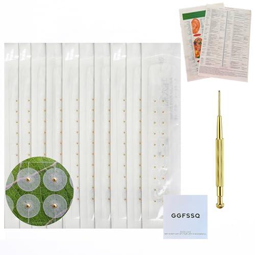 Ear Seeds Acupuncture Kit – 200 Pieces – Acupressure with Ears Seed, with Bonus Free Chart and Brass Acupressure Probe – for Balance & Wellness (gold-200pcs)