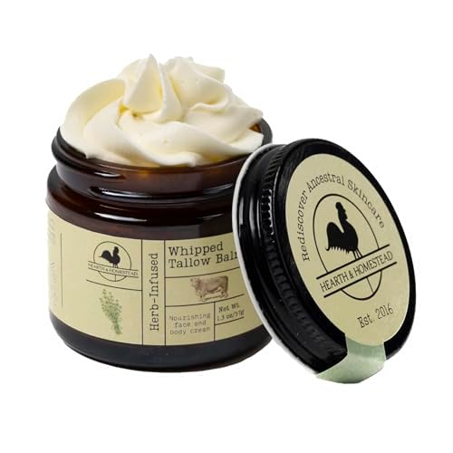 Hearth and Homestead: Handmade Whipped Tallow Balm (Unscented/Herb-Infused) – Organic Body Butter with Infused Olive Oil, for Eczema, Rosacea, Baby – 1.3 oz