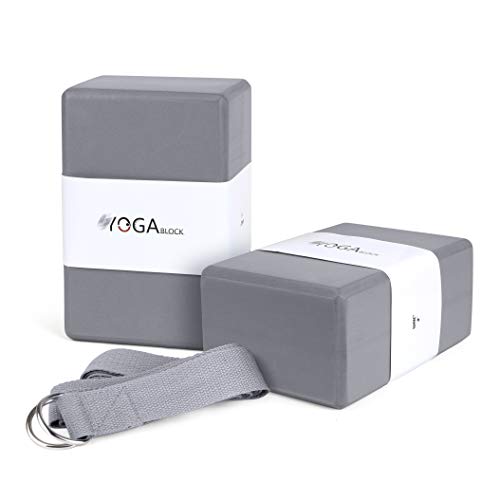 Overmont Yoga Block 2 Pack Supportive Latex-Free EVA Foam Soft Non-Slip Surface for General Fitness Pilates Stretching and Meditation 9″x6″x3″ Yoga Strap Included