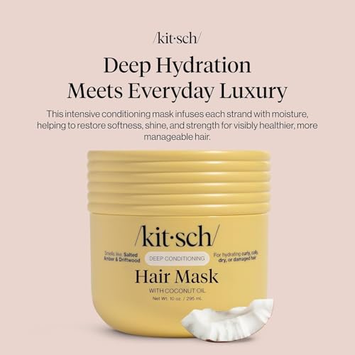 Kitsch Deep Conditioning Hair Mask – Moisturizing Hair Mask for Damaged Hair with Coconut Oil – Hydrating, Strengthening & Frizz-Reducing Hair Care Treatment for Curly, Coily & All Hair Types – 10 oz