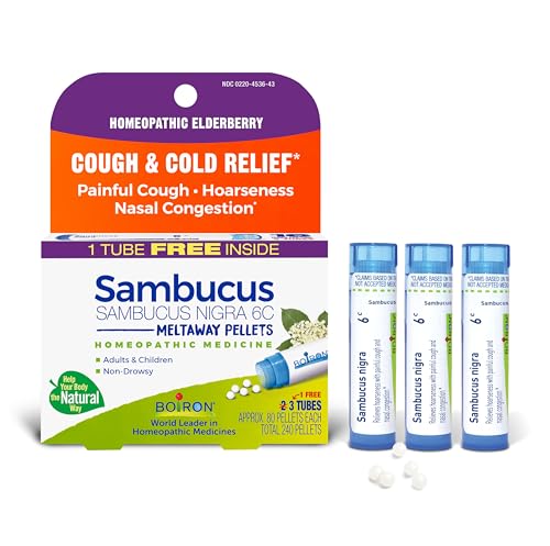 Boiron Sambucus Nigra 6c Homeopathic Medicine for Cough and Cold Relief – 3 Count (240 Pellets)